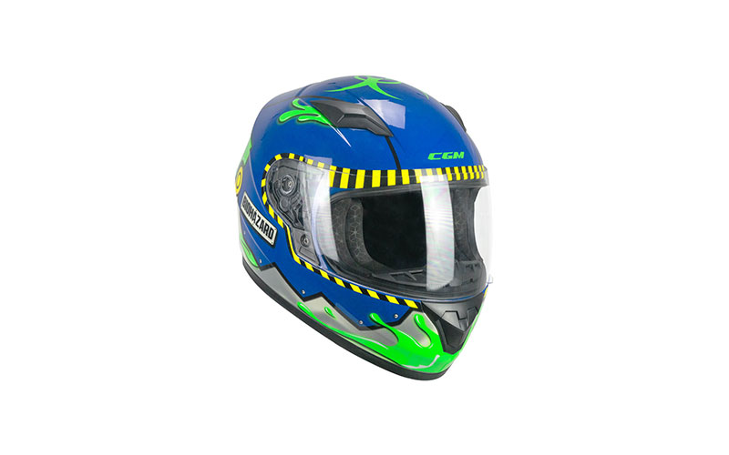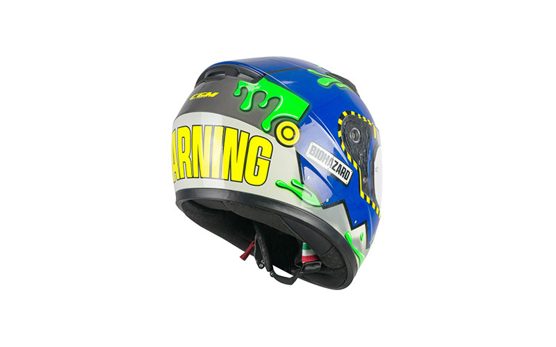 The CGM Biohazard Kids helmet is a bold full-face kids’ helmet featuring eye-catching biohazard graphics, an HPT shell, ECE 22.06 safety rating, micrometric buckle, and vibrant removable interior.