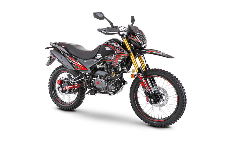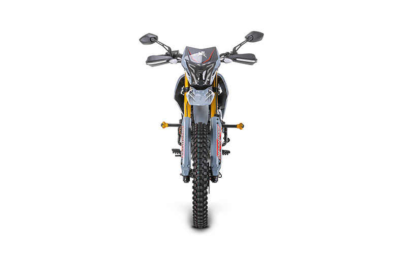 The Romet CRS 250 is a nimble, road-legal enduro motorcycle for 2025. Powered by a 250 cm³ air-cooled single-cylinder EFI engine producing 17 HP and 18.4 Nm of torque, it weighs 140 kg and sports USD front forks and rear monoshock suspension. With 90/100‑21 front and 120/90‑19 rear tires, CBS hydraulic discs, a 920 mm seat, and 10 L fuel tank, it's perfect for versatile, off-road adventures.